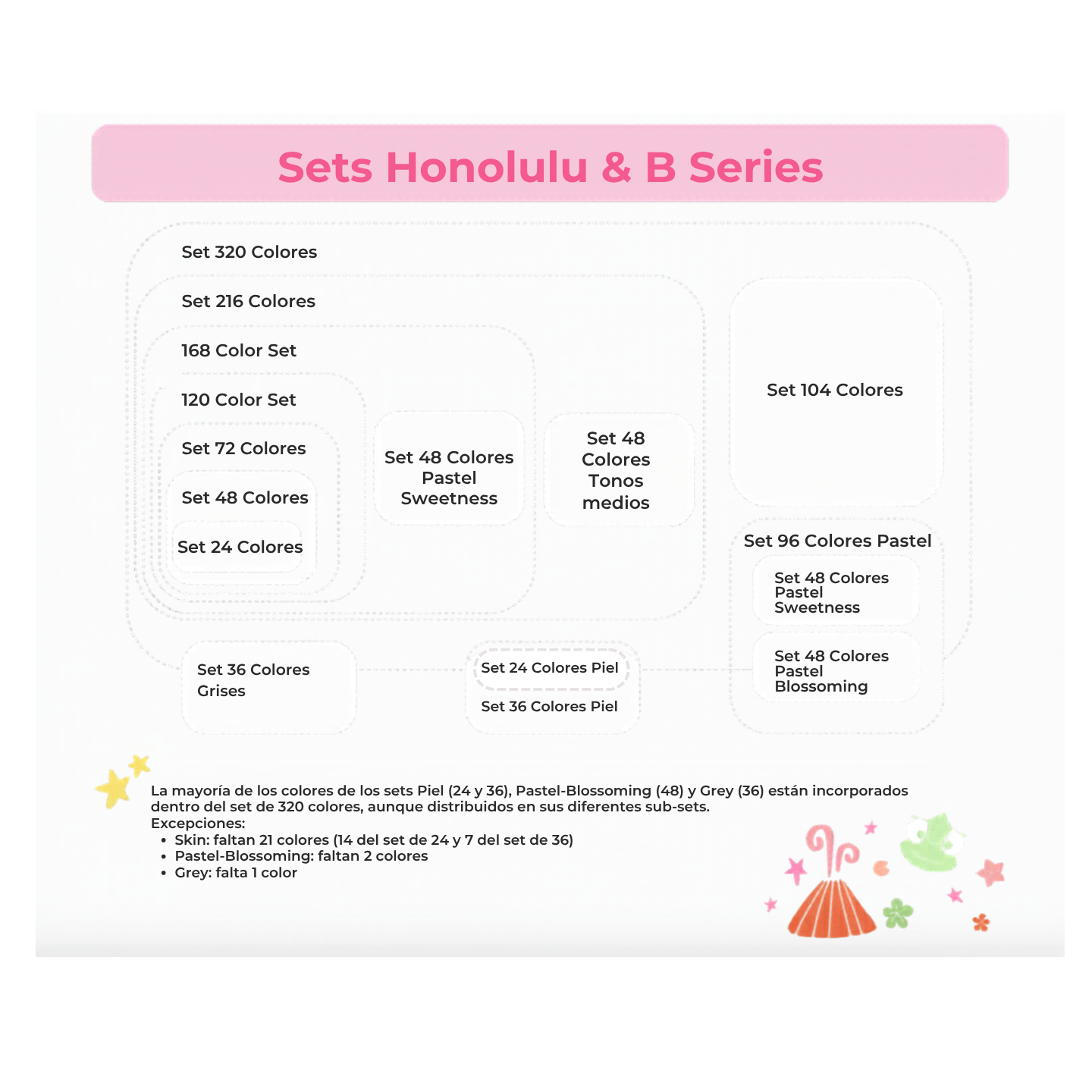 HONOLULU MALETA 36 MARCADORES DE ALCOHOL TONOS PIEL OHUHU